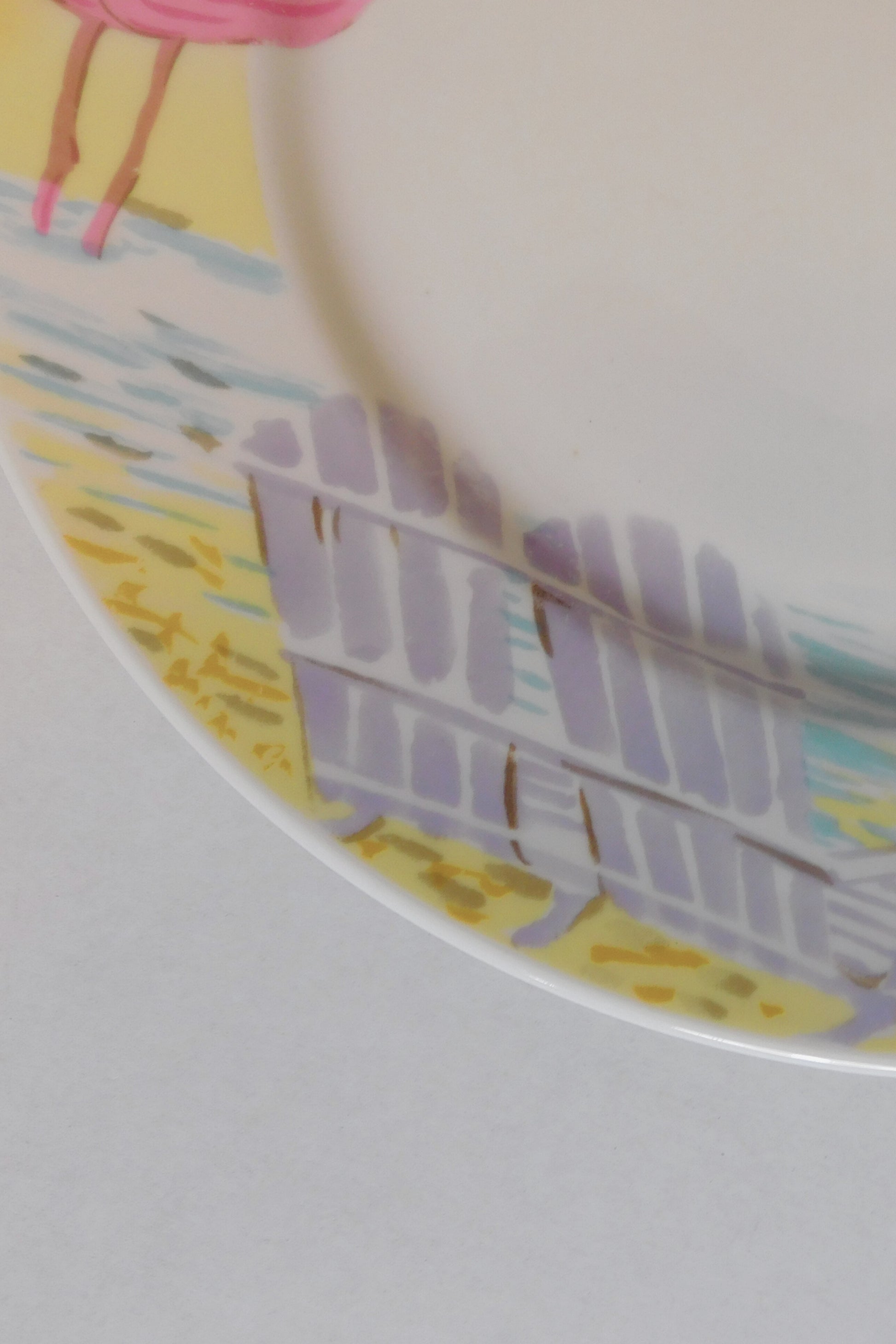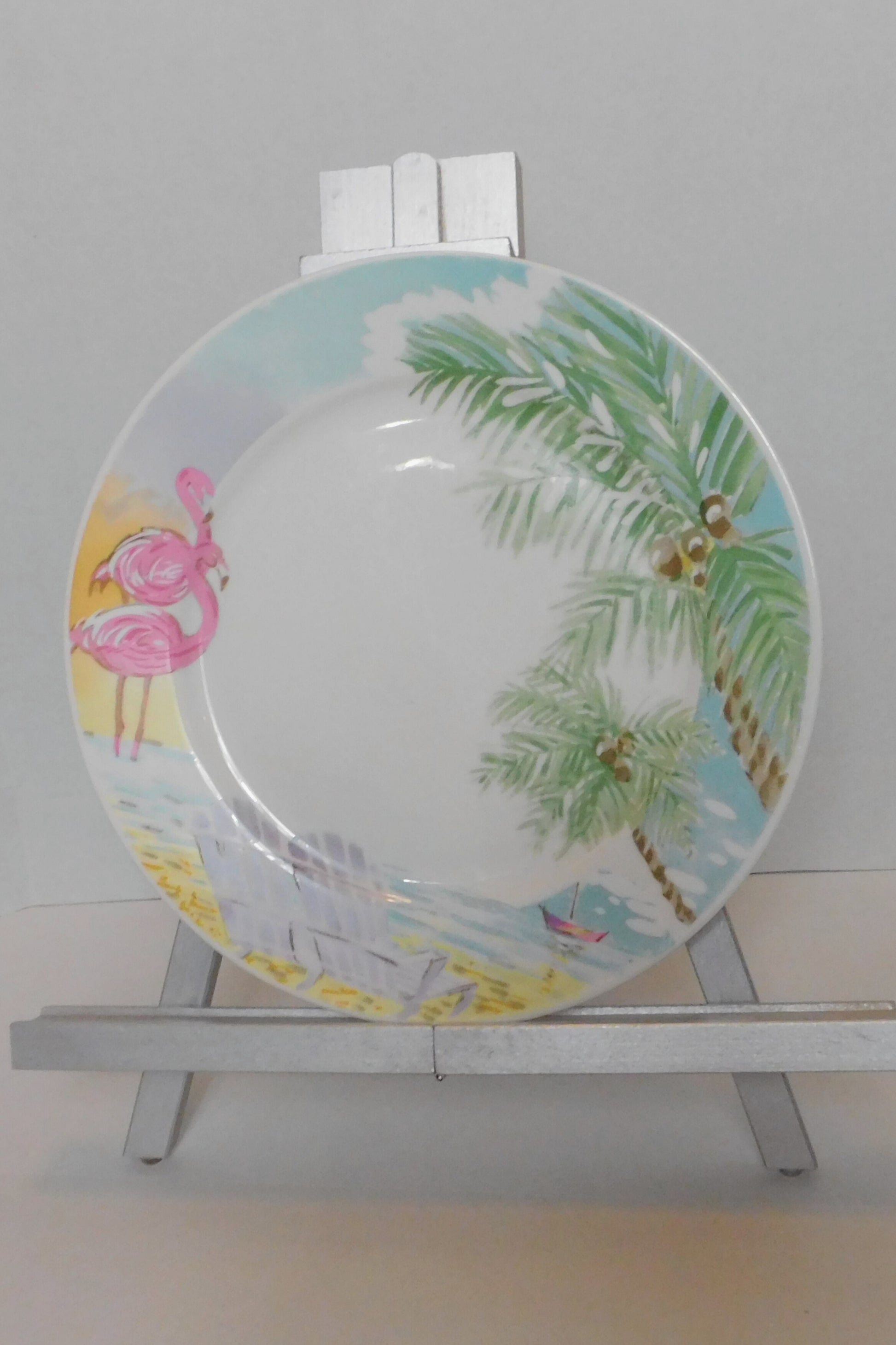 Bring some whimsy to your table with our Flamingo by Gibson Designs Plate. This playful plate features pink flamingos and a beach scene, adding a touch of fun to any meal. Perfect for those who don't take themselves too seriously (but still want to impress their guests).