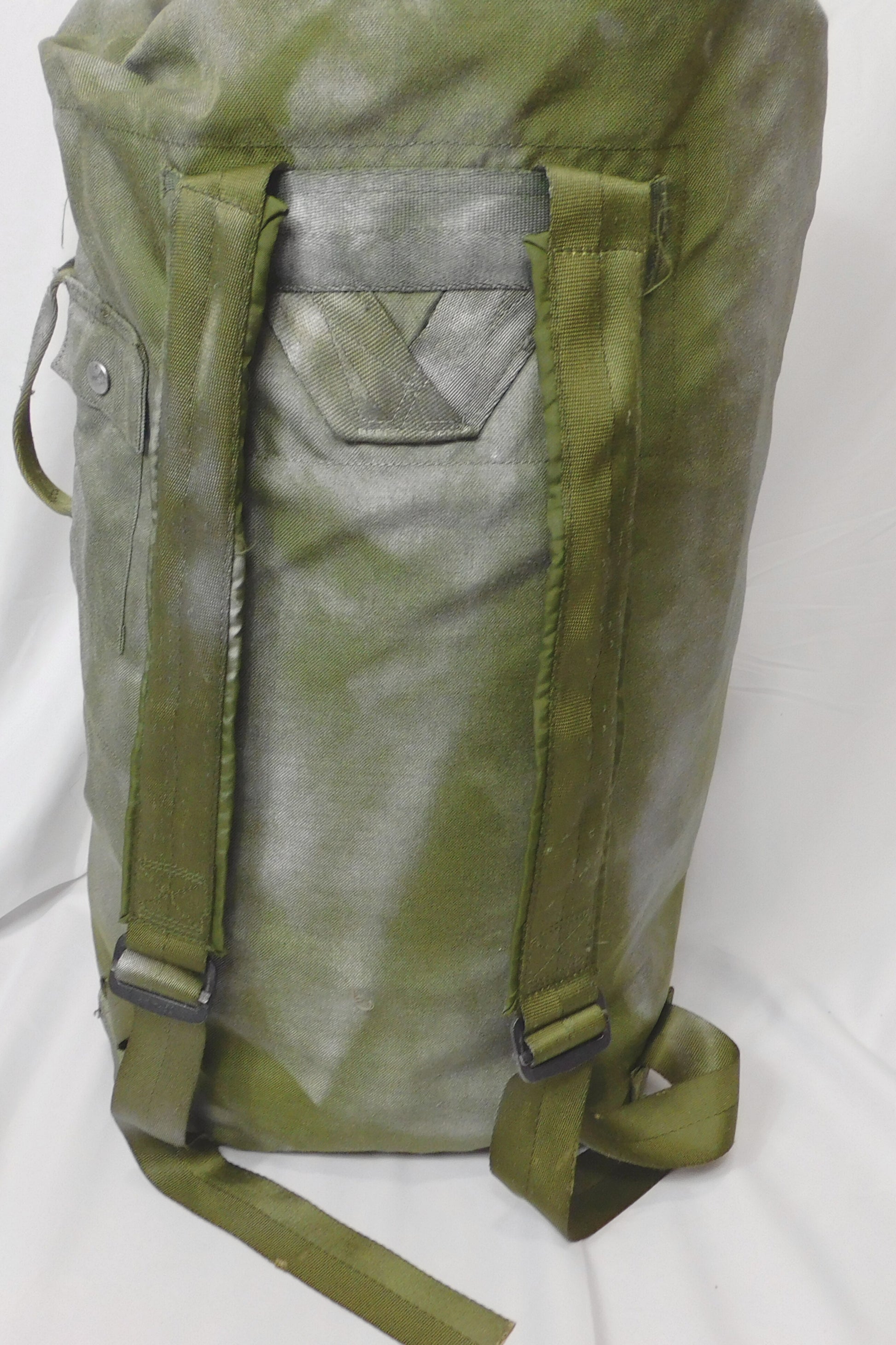 Carry your gear in style with the SOLDIER OF FORCE Heavy Metal Duffle Bag. This traditional military green duffle bag features a buckle at the top and straps on the side. The unique accents of silver and gold spray paint add a touch of edginess to your look. Perfect for any adventure, whether you're hitting the gym or going on a trip.