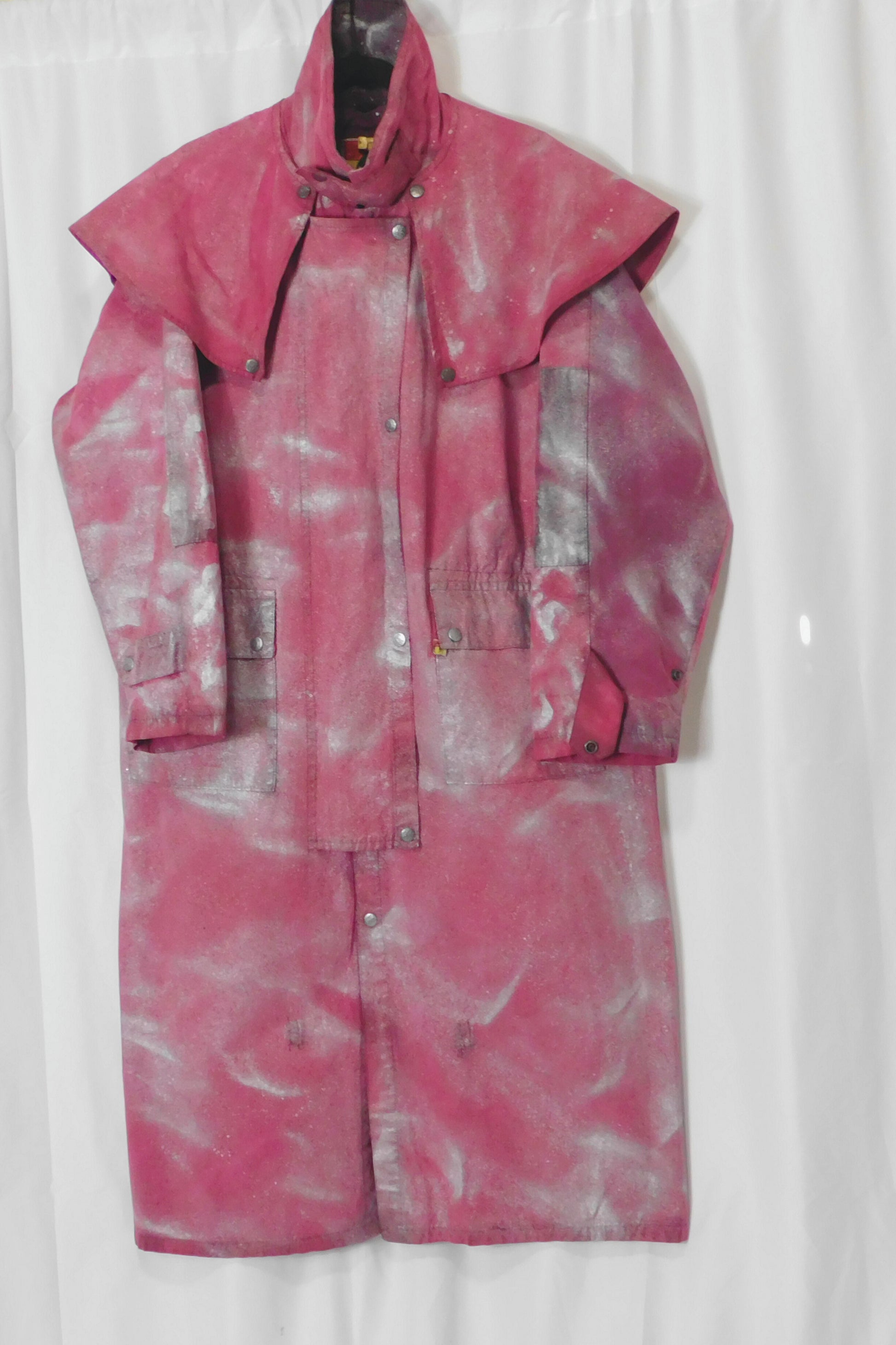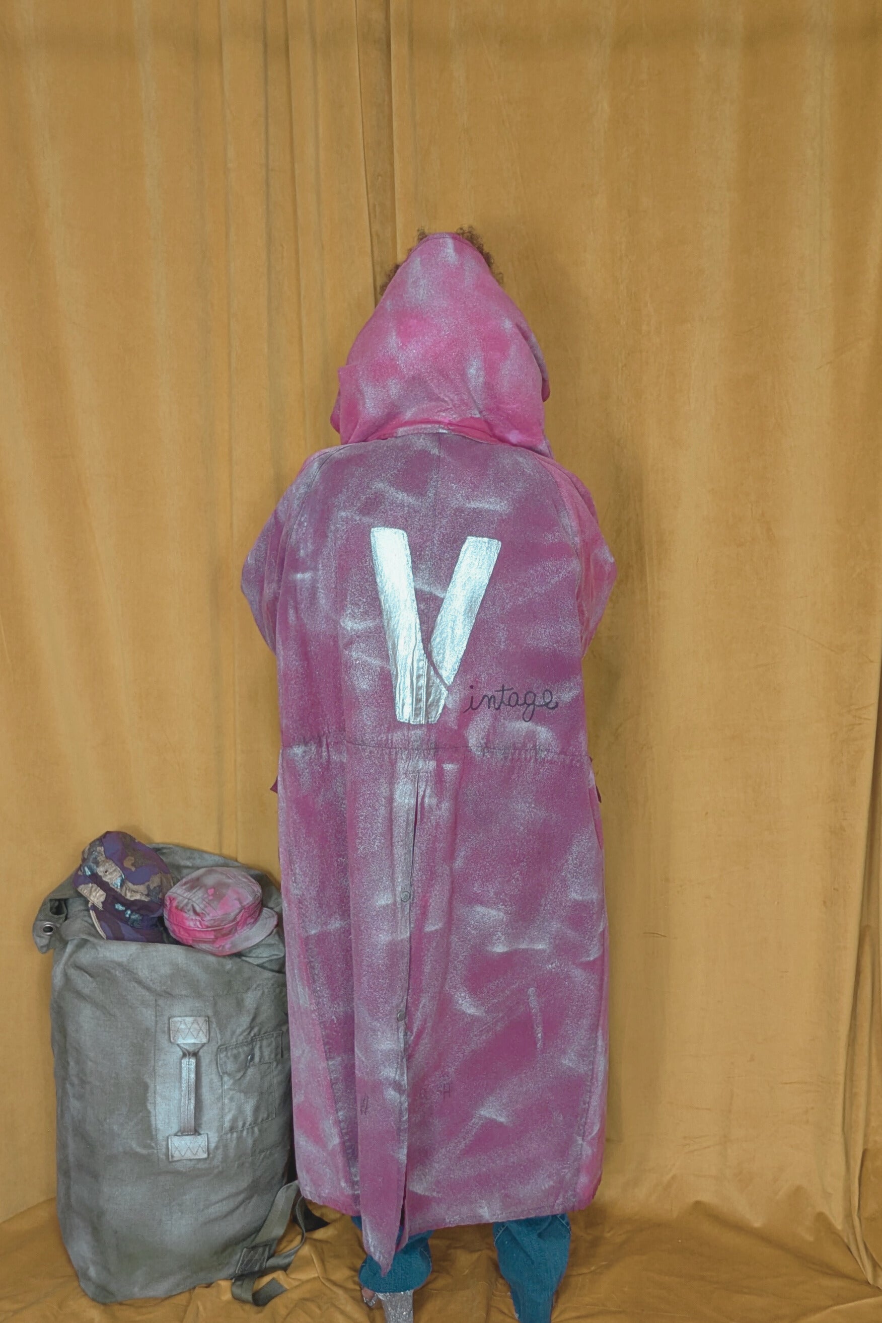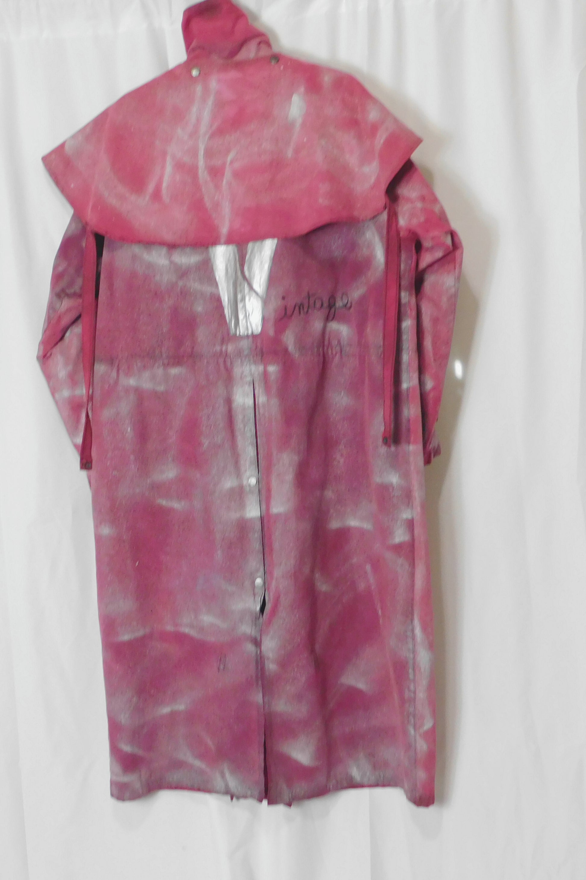 Stay stylish and warm in the SOLDIER OF FORCE Trench Coat. This colorblock burgundy coat features a detachable collar and a unique V graphic on the back. Lined for extra comfort, wear it buttoned up for a vintage look. Can fit size XL-2XL. Bust, waist, and hips all 25 inches. Length at 50 inches. Measurements laying flat.